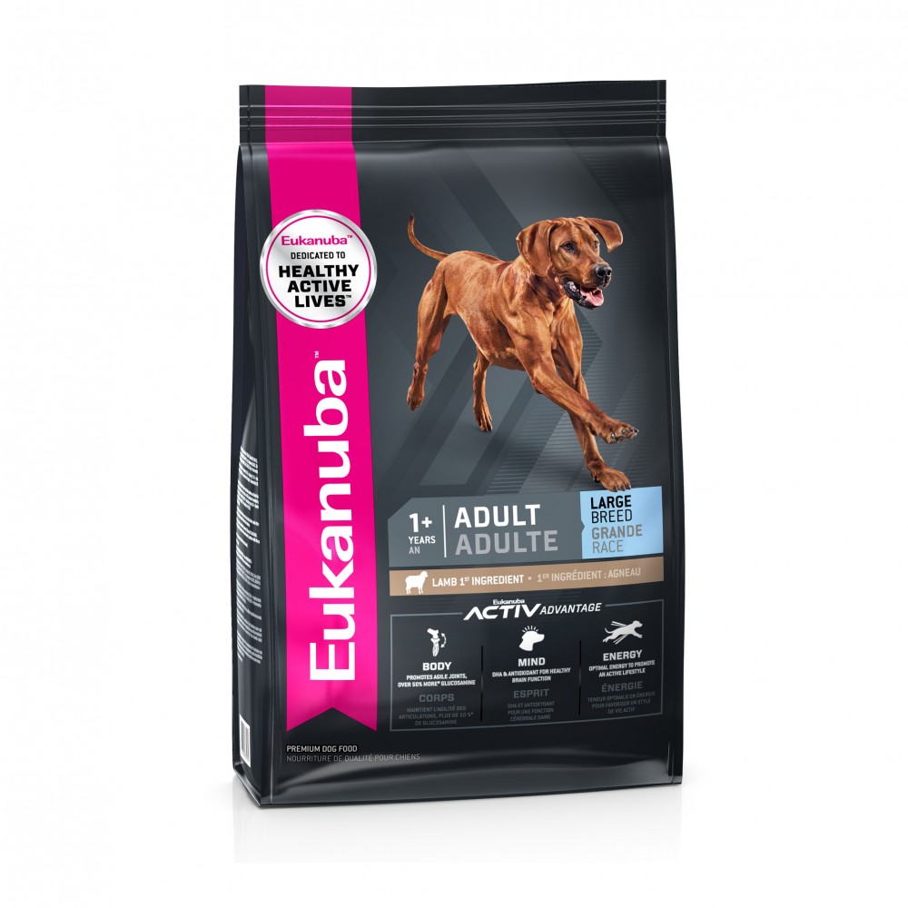 Eukanuba™ Adult Large Breed Lamb & Rice contains high quality animal based protein (chicken and lamb), fat, carbohydrates, fibres and important vitamins and minerals for the health and well-being of your large and giant breed adult dog